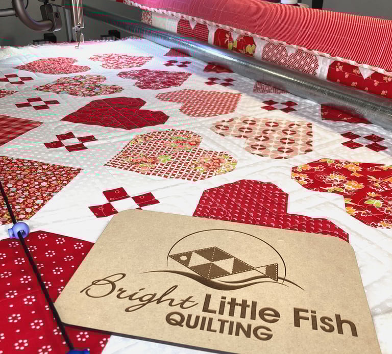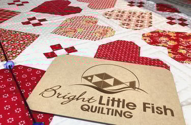 At bright little fish quilting, I bring your quilt tops to life with detailed edge-to-edge quilting, batting options, and binding help.