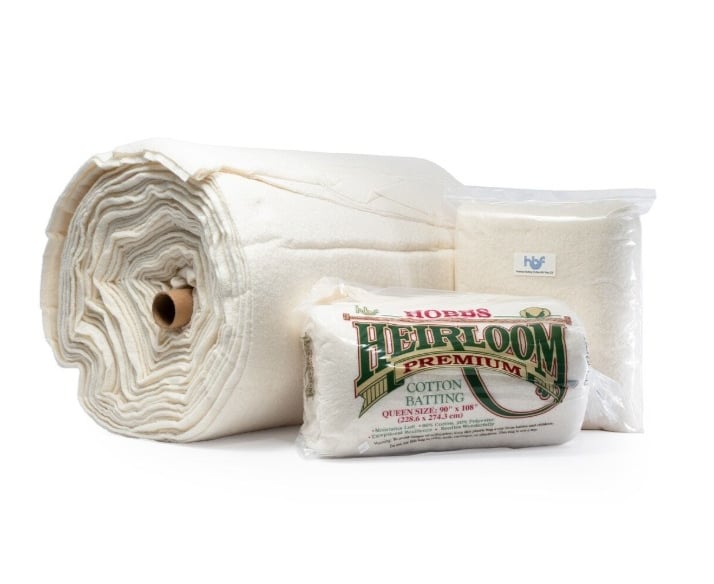 Quality batting options to add warmth and loft to your quilts. Hobbs 80/20 and Quilters Dream Puff. This is sold by linear inch.
